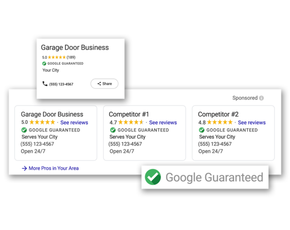 Own your service area show up in Google Maps and local searches every time someone nearby searches for a garage door company.