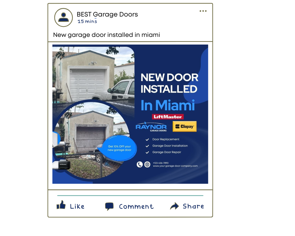 Build your garage doors services brand and reach homeowners before they even need a repair, showcase your previous everyday job. We manage your social presence so you stay top of mind in your local area.